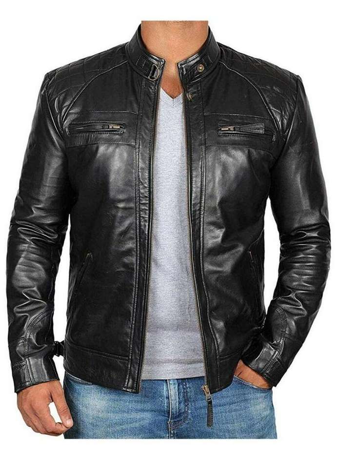 แจ็กเก็ตผู้ชายคอตั้งสำหรับฤดูหนาว, แจ็กเก็ตสีดำหนังแท้แท้พร้อมผ้าใบอบอุ่นแฟชั่นแบบเรียบสำหรับผู้ชาย DP