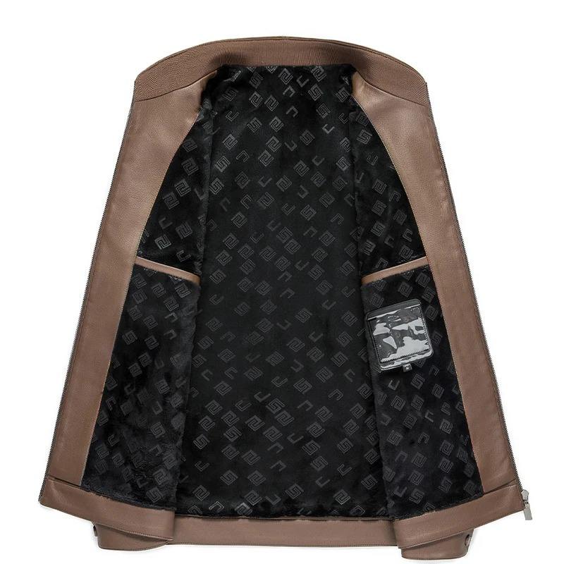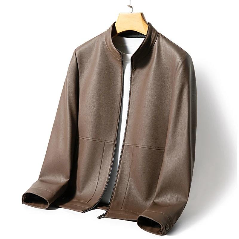 แจ็คเก็ตหนังคอปกตั้งของผู้ชาย, เสื้อโค้ทลำลองฤดูใบไม้ร่วงยืดหยุ่นระบายอากาศได้ดีเหมาะสำหรับเป็นของขวัญวันหยุดหรือวันหยุดสำหรับสามี