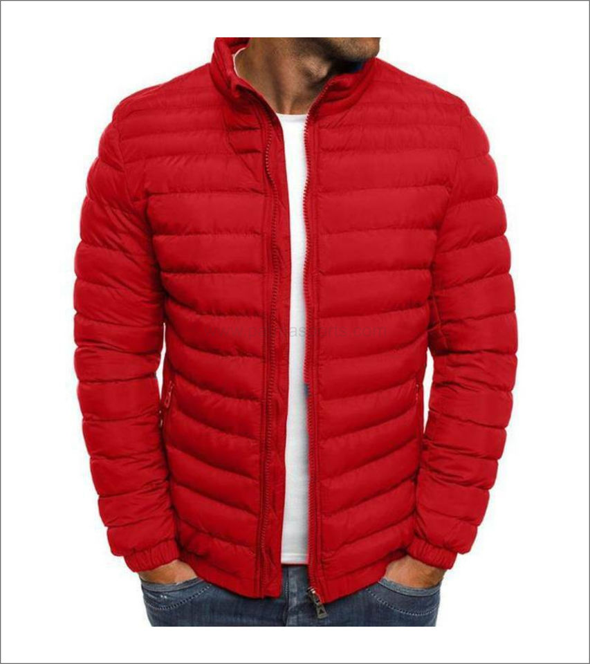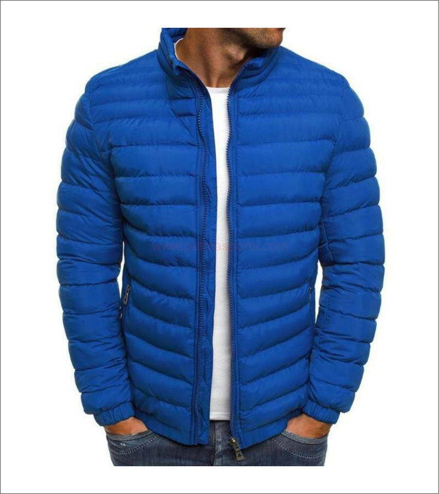 แจ็กเก็ตขนเป็ดโพลีเอสเตอร์ปกตั้งสำหรับผู้ชายสีทึบบางลำลองเก็บความร้อน