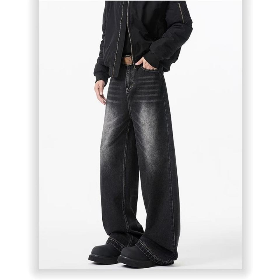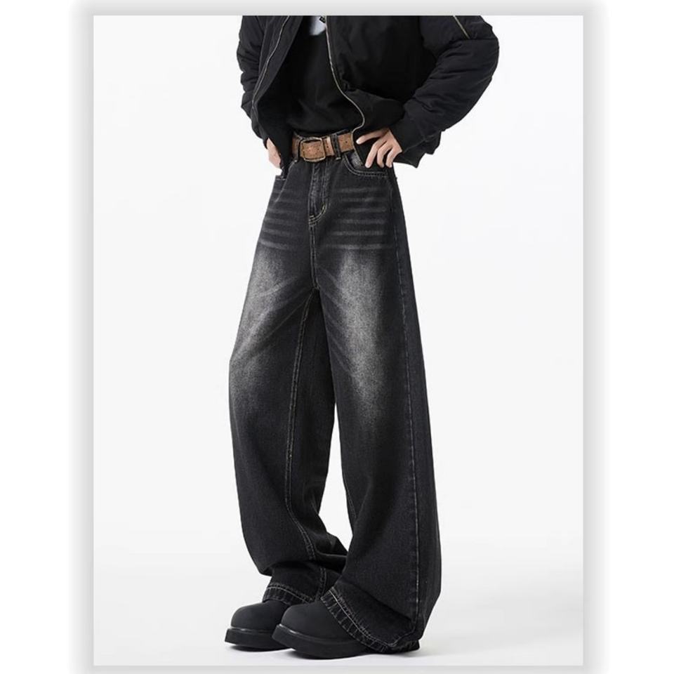 กางเกงยีนส์ขากว้างทรงหลวมสไตล์เรโทรสำหรับผู้ชาย | กางเกงยีนส์ทรงโอเวอร์ไซส์แบบวินเทจฟอกสี, ขายตรงจากโรงงาน, ปรับระดับการฟอกได้