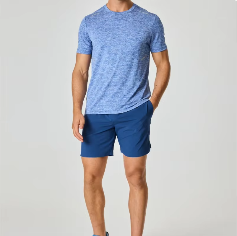 ชุดเสื้อยืดคอกลมพิมพ์ลายสไตล์สตรีทสำหรับผู้ชายและกางเกงขาสั้น ชุดเสื้อยืดออกกำลังกายกลางแจ้งและกางเกงวิ่งแบบสองชิ้น