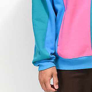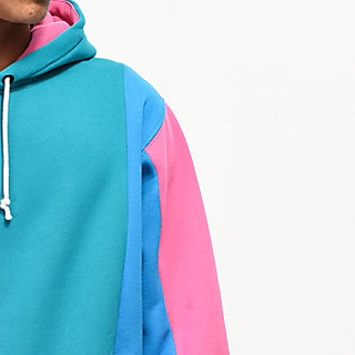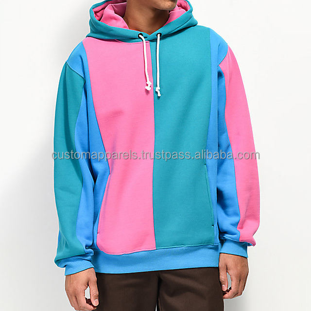 เสื้อมีฮู้ดแบบสวมหัวสำหรับผู้ชายเสื้อมีฮู้ดแบบสวมหัวสีฟ้าน้ำทะเลสีเขียวชั้นเย็บปะหลากสีสำหรับฤดูหนาว