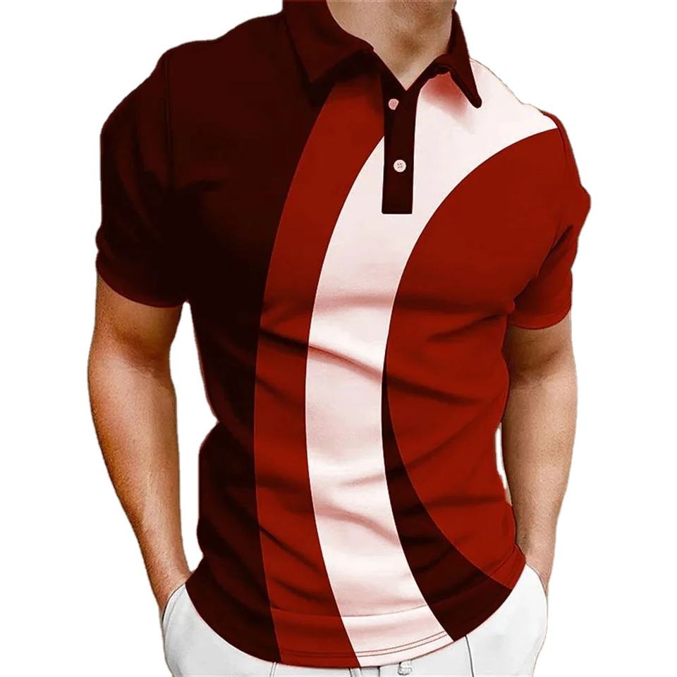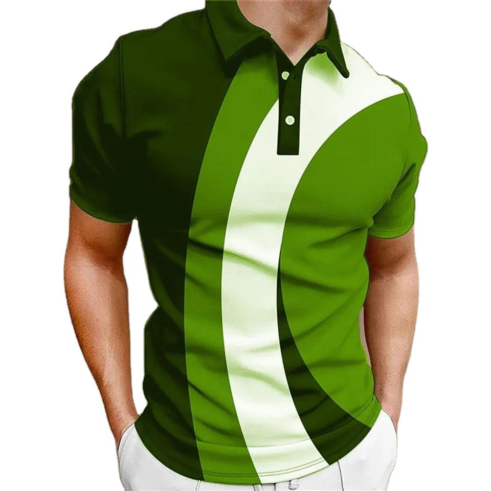เสื้อยืดโปโลลายทางแนวสตรีทของผู้ชายเสื้อยืดแฟชั่นพิมพ์ลาย3D แฟชั่นฤดูร้อนเรียบง่ายสำหรับเสื้อโปโลต่อต้านริ้วรอยเสื้อลำลอง