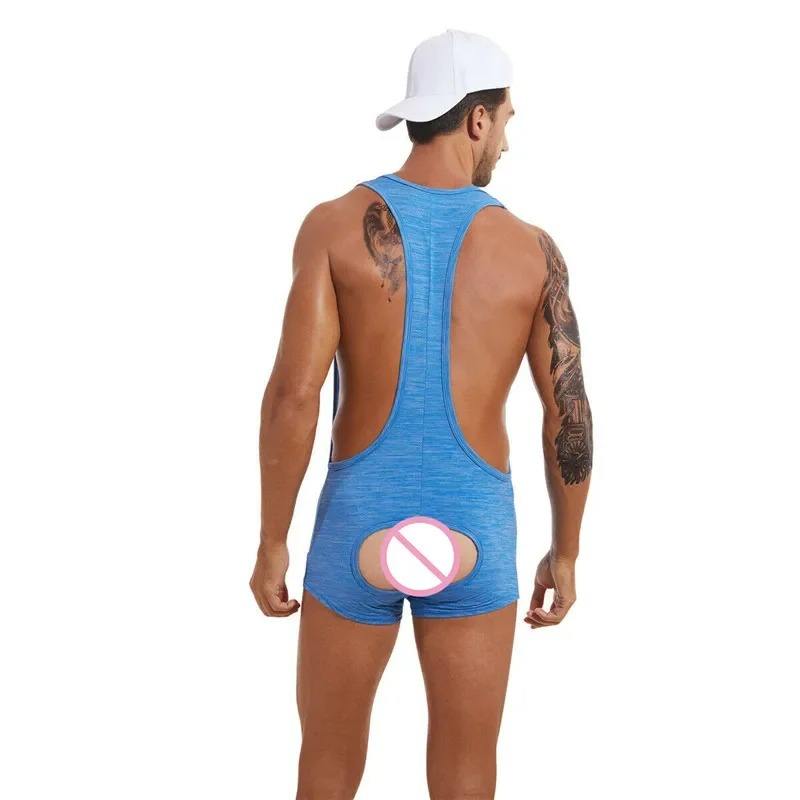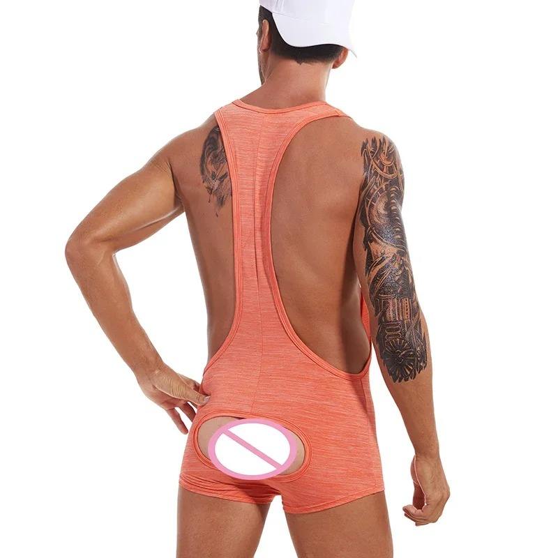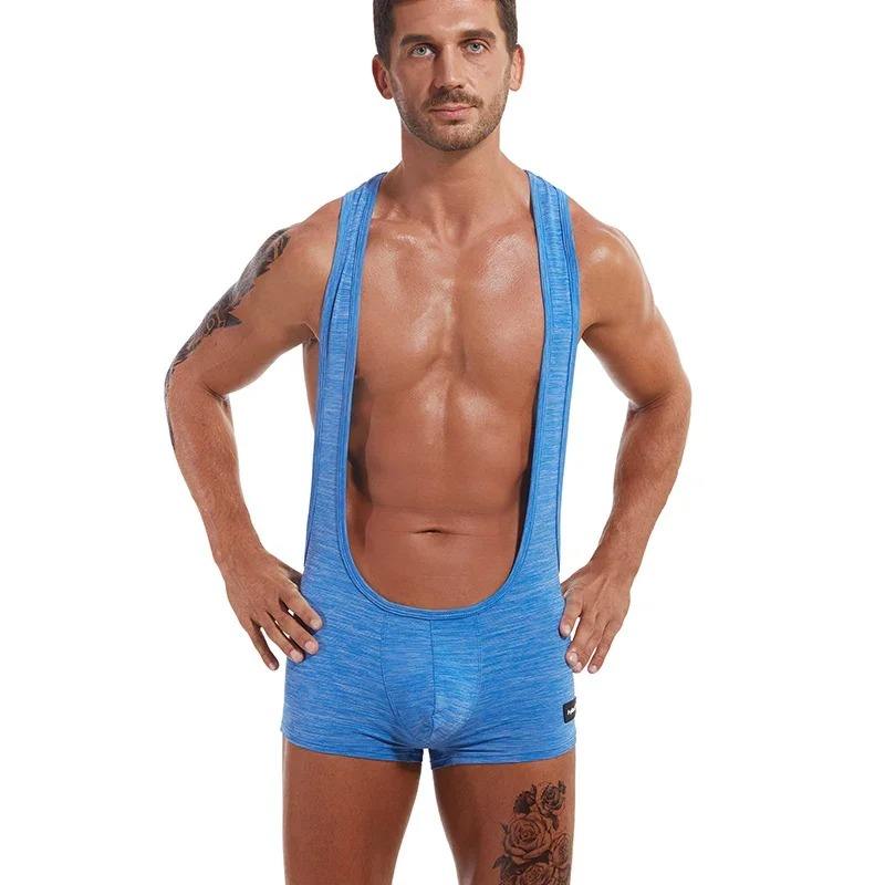 กางเกงบ็อกเซอร์ขาสั้นสำหรับผู้ชายจัมพ์สูทสีพื้นแขนกุดยืด