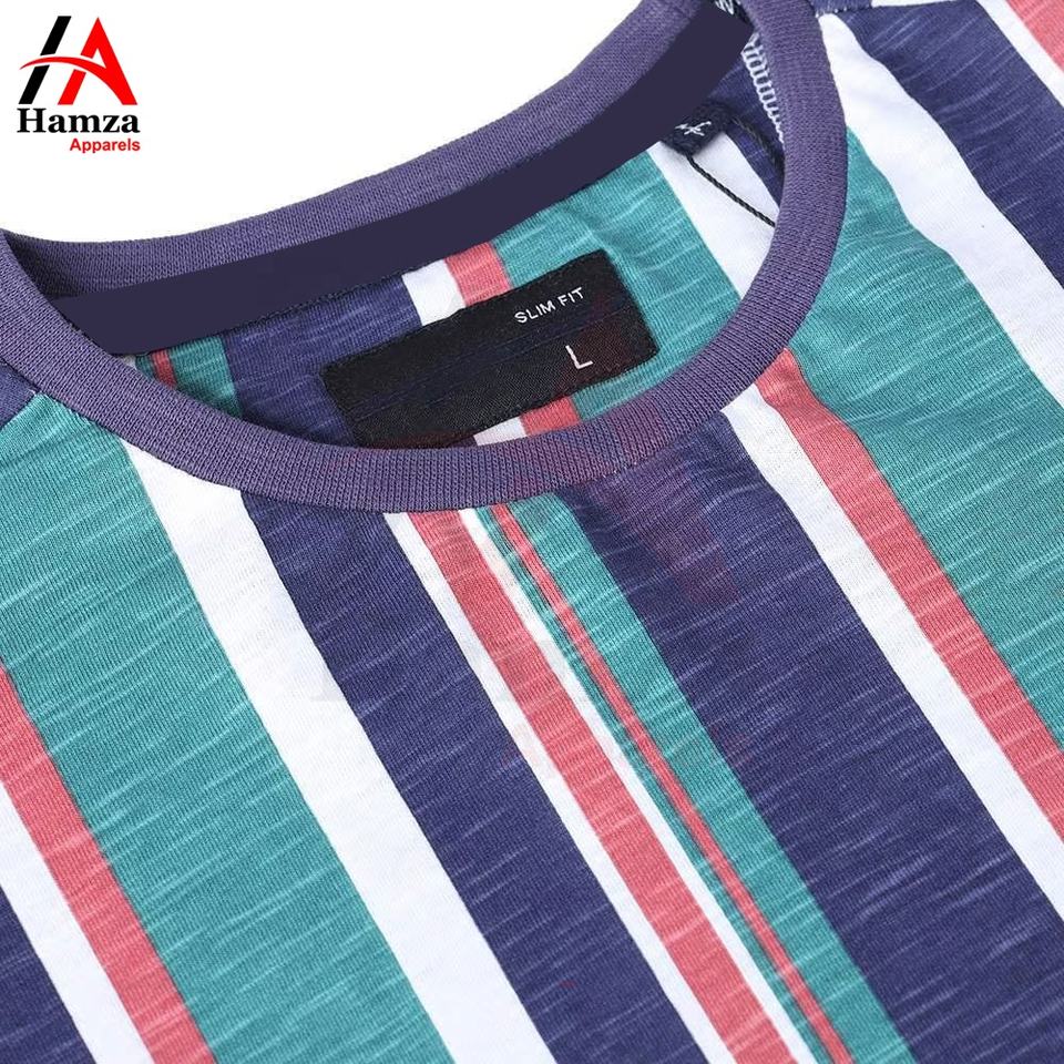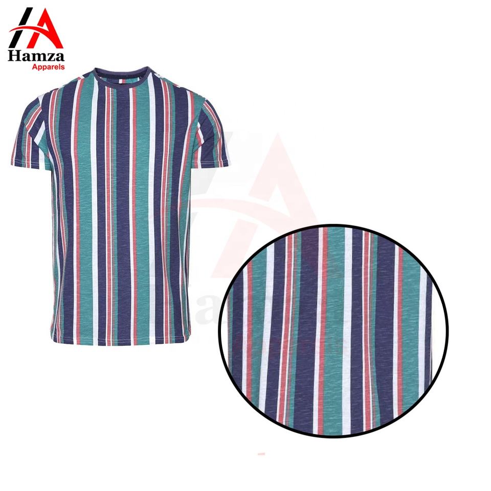 เสื้อยืดลายทางสำหรับผู้ชายสีเขียวกรมท่าขาวมารูนผ้าฝ้าย100% ผ้าเนื้อละเอียดคอกลมดีไซน์คลาสสิกแขนสั้น