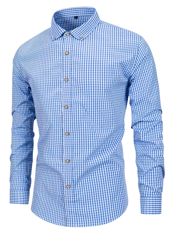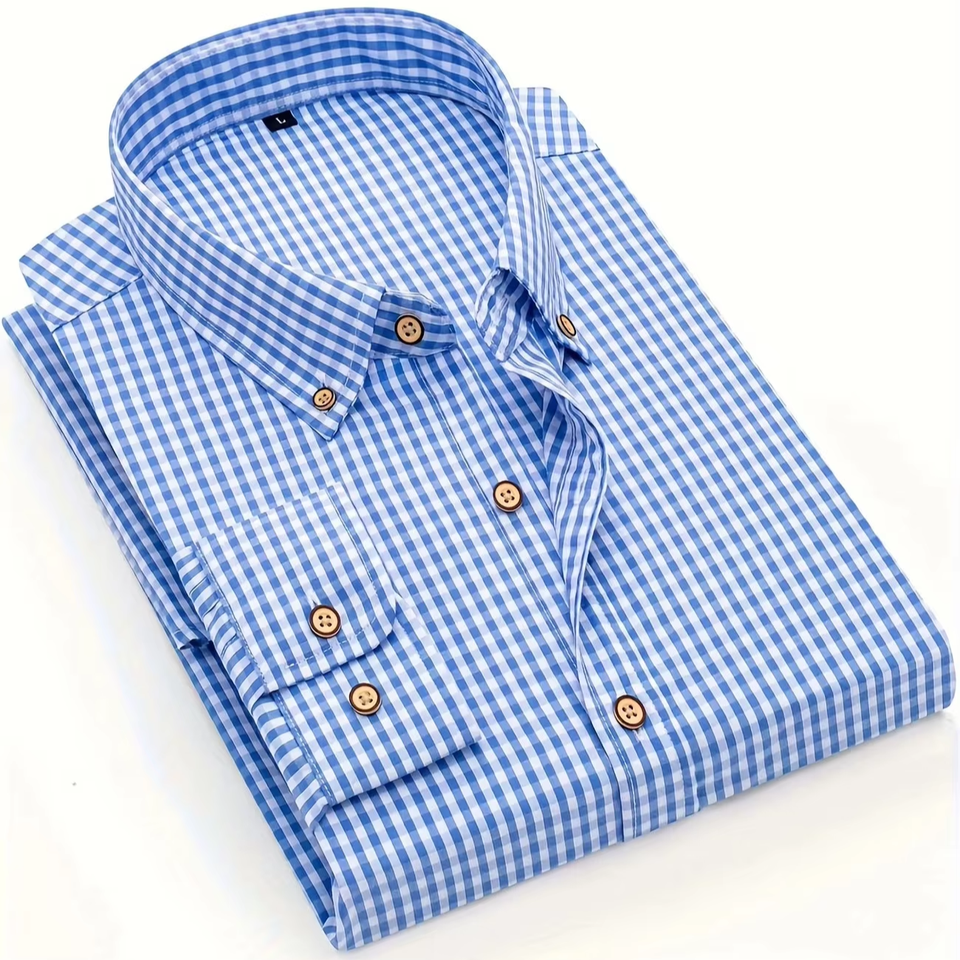 เสื้อเชิ้ตลายตารางสำหรับผู้ชายผ้าฝ้าย100% มีสไตล์เสื้อลำลองคอปกมีกระดุมแขนยาวระบายอากาศได้ดีดีไซน์ผ้าป๊อปลิช