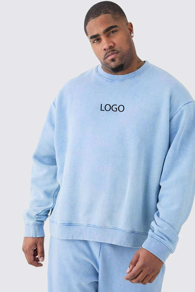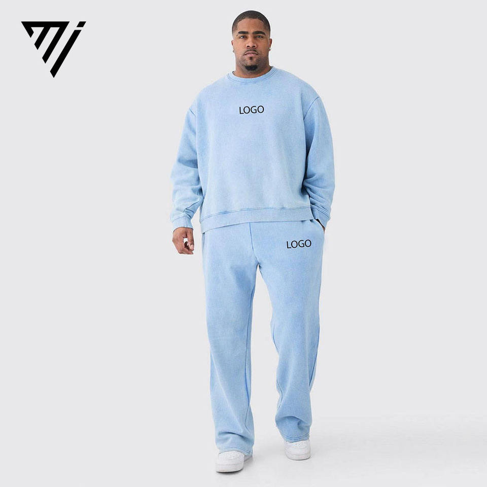 ชุดเซ็ตเสื้อสเวตเชิ้ตและกางเกงจ็อกเกอร์ผ้าฟลีซคอตตอนสีน้ำเงินสไตล์ลำลองสำหรับผู้ชาย ระบายอากาศได้ดี ไซส์พลัส เหมาะสำหรับฤดูหนาว