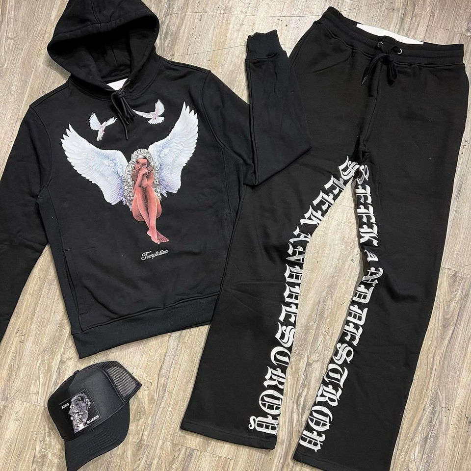 ชุดวอร์มผู้ชายมีฮู้ด ดีไซน์ทันสมัย ระบายอากาศได้ดี ผ้าฝ้ายสองชิ้น พร้อมเชือกผูกเอว สำหรับฤดูหนาว เป็นมิตรต่อสิ่งแวดล้อม