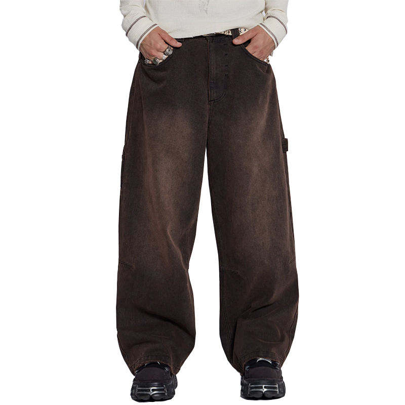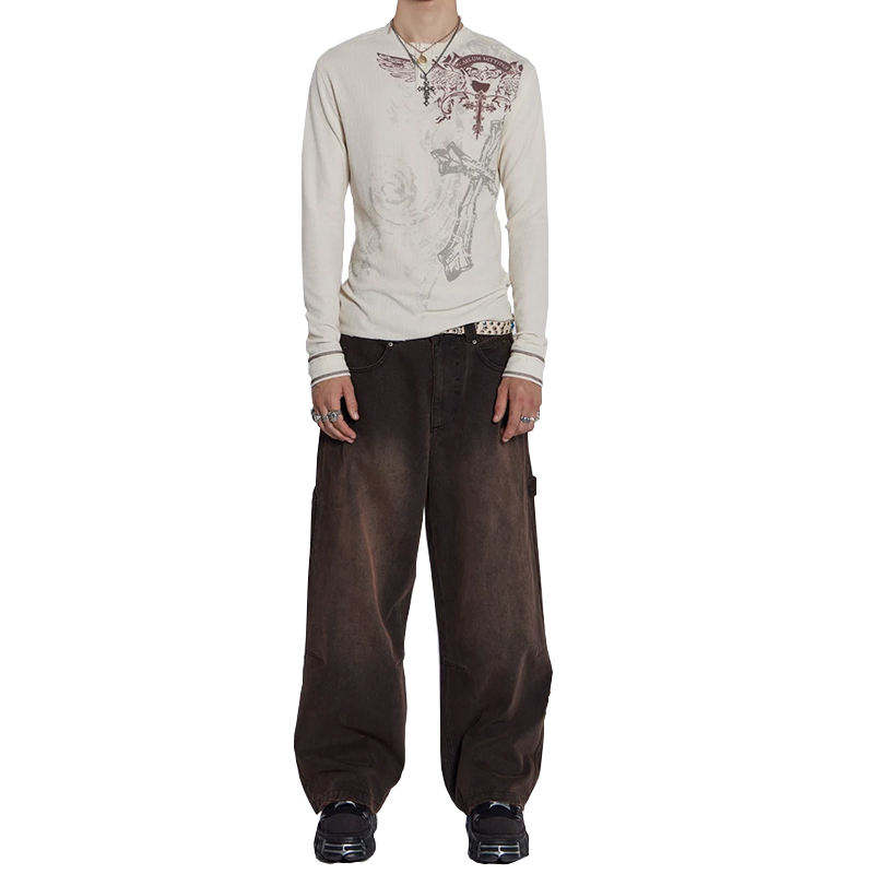 Men's Stylish Printed Baggy Cargo Denim Pants Straight Style Joggers Loose Fit Mid Waist Streetwear Jean Hip Hop Style