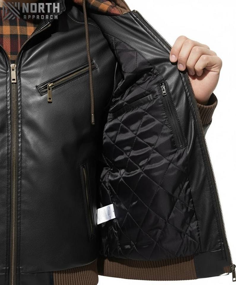 แจ็กเก็ตหนัง PU มีซิปสำหรับผู้ชาย, แจ็กเก็ตขี่มอเตอร์ไซค์ฤดูหนาวทันสมัยผ้าแคนวาสสำหรับผู้ชาย