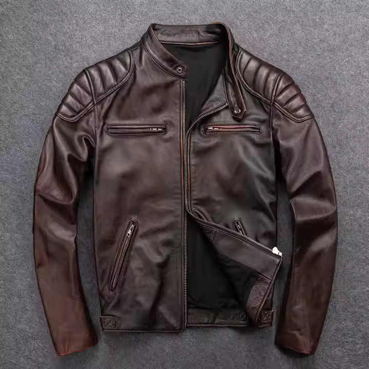 เสื้อแจ็คเก็ตหนังแท้ทรงสลิมฟิตสำหรับผู้ชาย ดีไซน์ทันสมัย คอตั้ง ปิดด้วยซิป เหมาะสำหรับฤดูหนาว ตัดเย็บอย่างประณีต