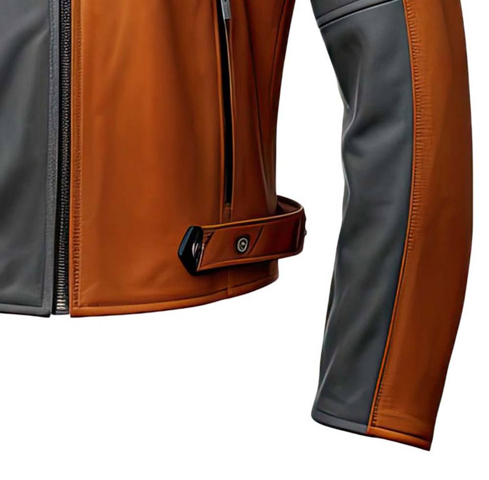 เสื้อแจ็คเก็ตหนังผู้ชายสไตล์สตรีทแวร์แบบซิป สีน้ำตาลเทา หนังแกะแท้ คอตั้ง น้ำหนักเบา ทรงเข้ารูป ผ้าขนสัตว์