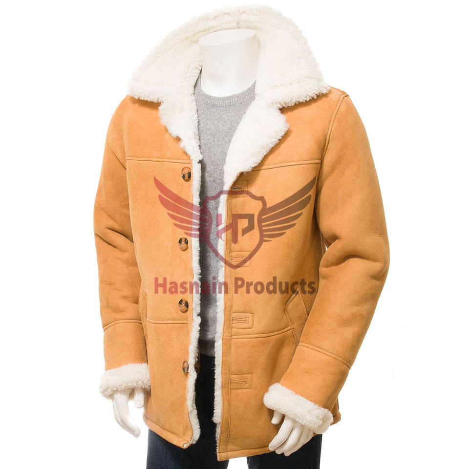 เสื้อโค้ทหนังแกะขนแกะสีน้ำตาลเข้มของผู้ชายแจ็กเก็ตฤดูหนาวให้ความอบอุ่นปรับแต่งได้คุณภาพระดับพรีเมียมเสื้อขนสัตว์แท้