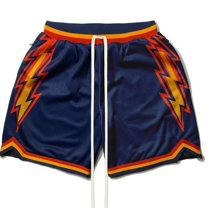 กางเกงกีฬาขาสั้นเอวยางยืดสำหรับผู้ชายกางเกงออกกำลังกายฟิตเนสพิมพ์ลายพิมพ์ซับลิเมตของผู้ชาย