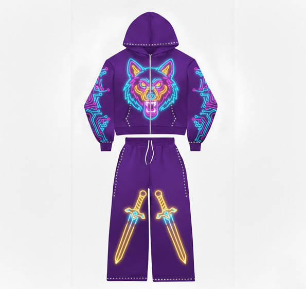 เสื้อฮู้ดดี้เทคแวร์ผู้ชายแบบซับลิเมชั่น ลายวงจรอิเล็กทรอนิกส์เรืองแสงนีออนที่แขนเสื้อ สไตล์โมเดิร์นสำหรับนักกีฬา