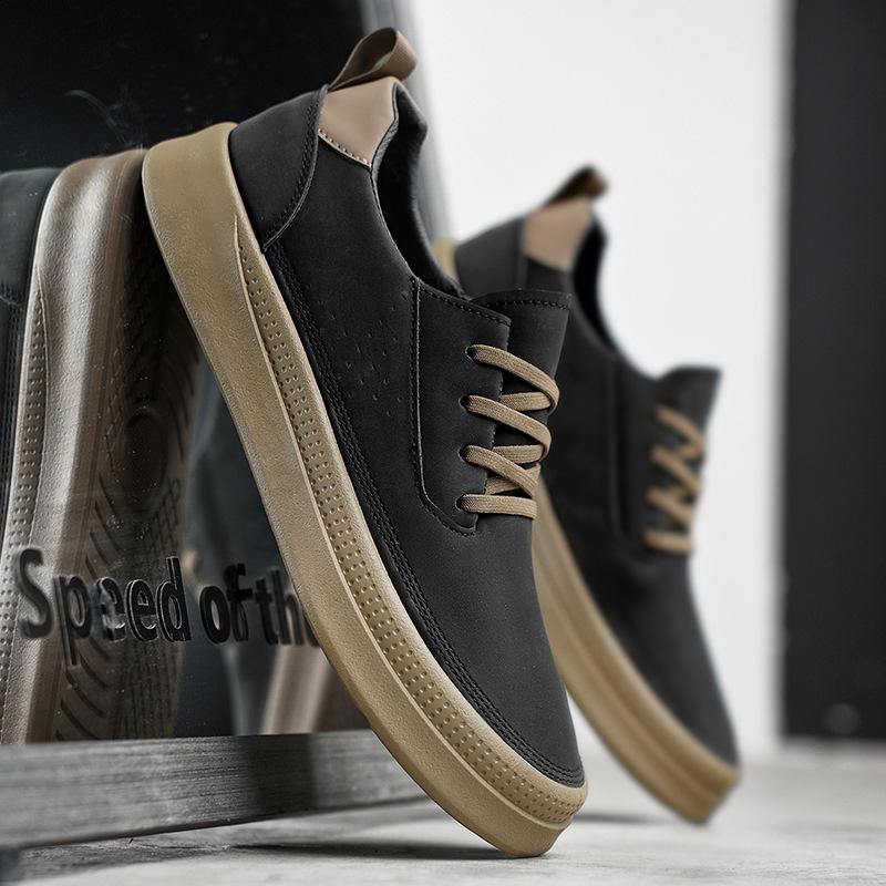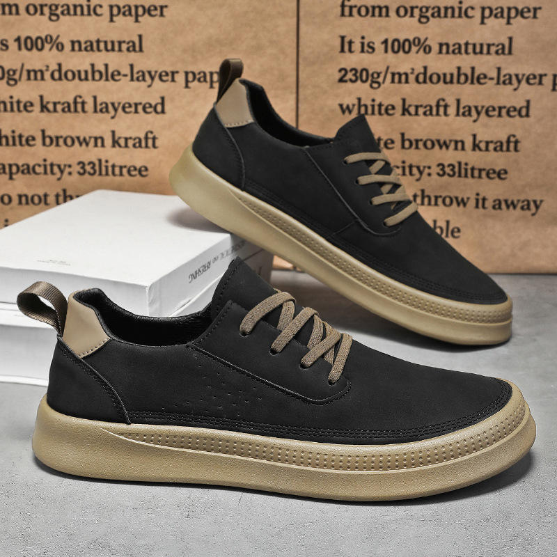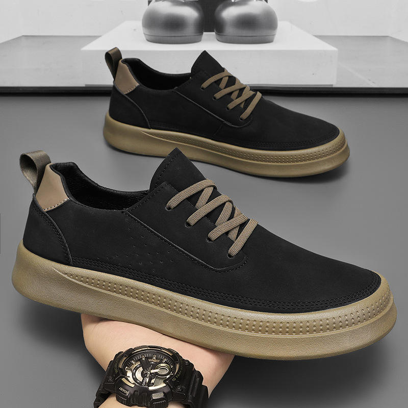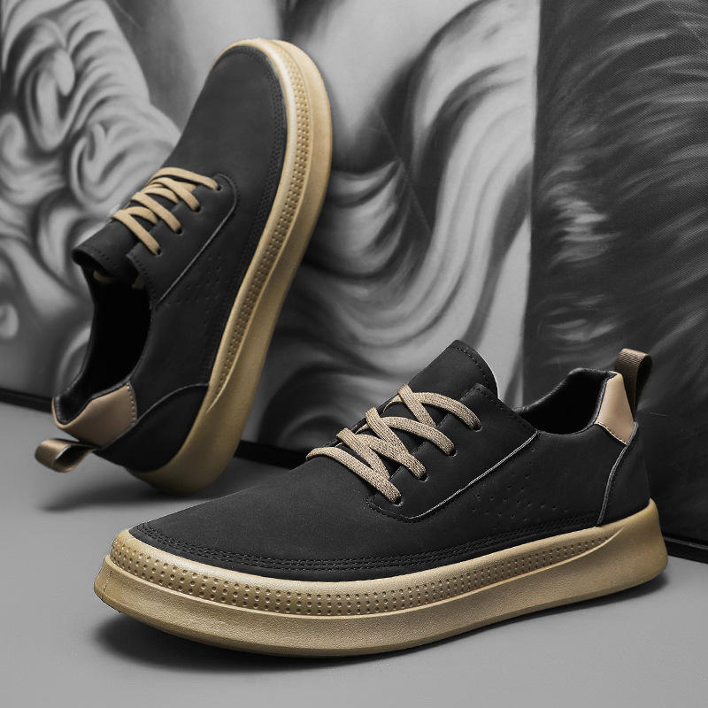 รองเท้าลำลองหนังกลับผู้ชายแบบผูกเชือก ระบายอากาศได้ดี เพิ่มความสูง ทันสมัย ใช้งานได้หลากหลาย รองเท้าสเก็ตบอร์ด รองเท้าลำลองหนังกลับผู้ชายแบบผูกเชือก