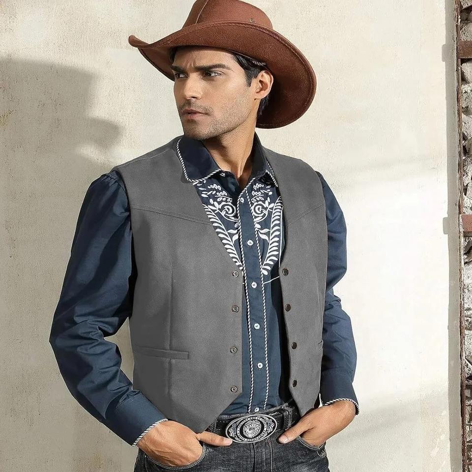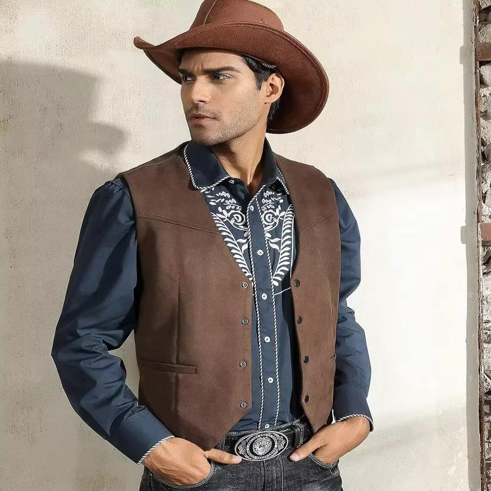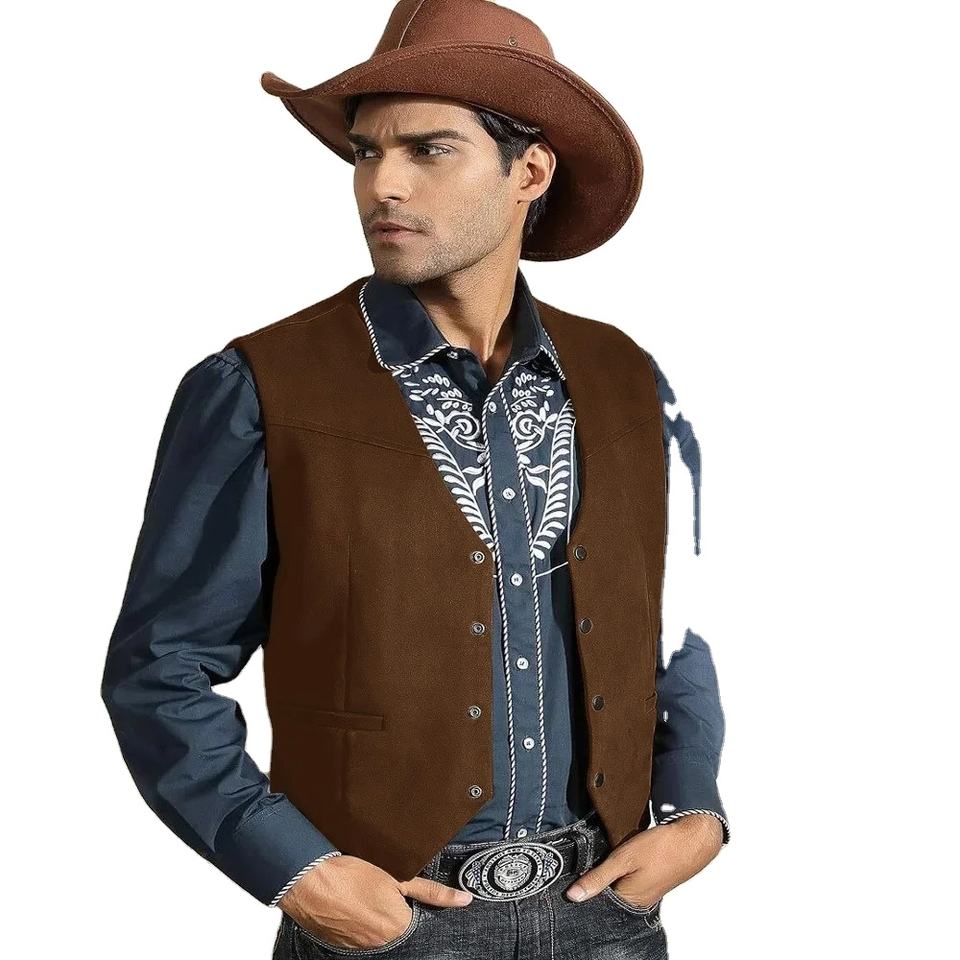 เสื้อกั๊กหนังกลับสำหรับผู้ชายแจ็กเก็ตแขนกุดแนวพังก์สีตามสั่งสไตล์คาวบอยตะวันตกลำลองลำลองเป็นมิตรต่อสิ่งแวดล้อมสำหรับฤดูหนาว