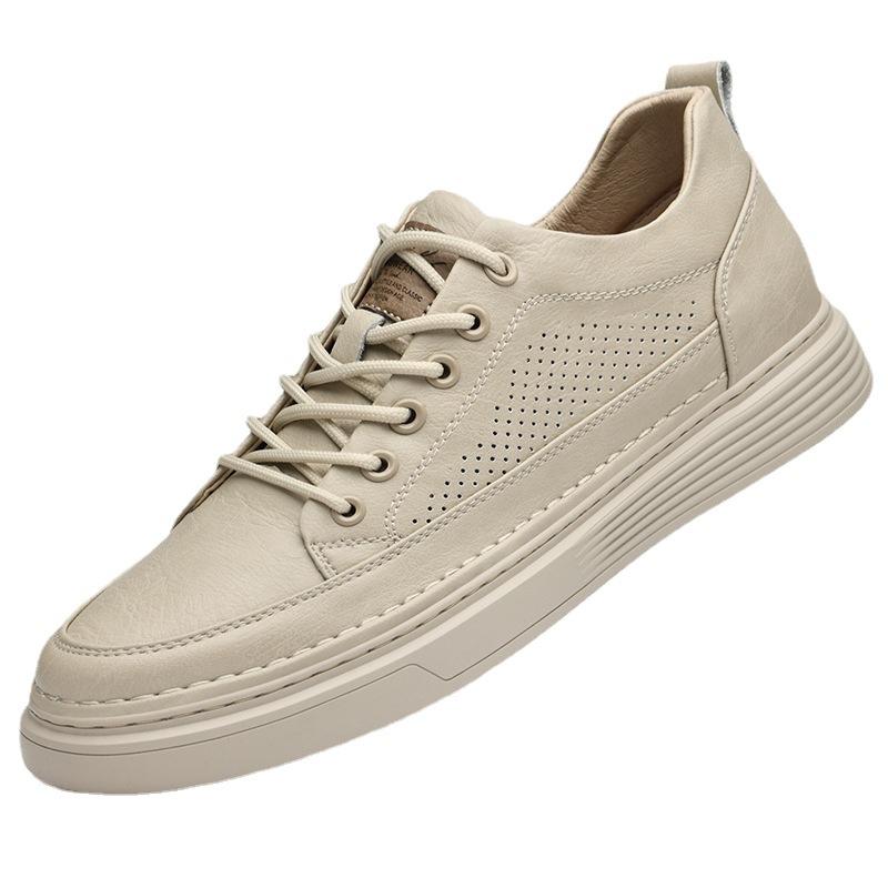 รองเท้าผ้าใบเพิ่มความสูง 8 ซม. สำหรับผู้ชาย หนังวัวแท้ ระบายอากาศได้ดี แบบผูกเชือก ดีไซน์โปร่ง น้ำหนักเบา เหมาะสำหรับวัยรุ่น พื้นหนา