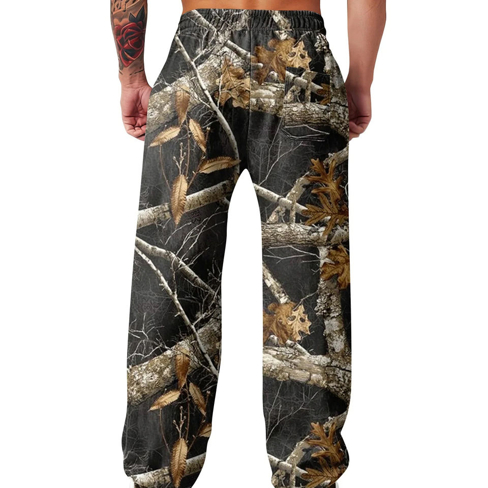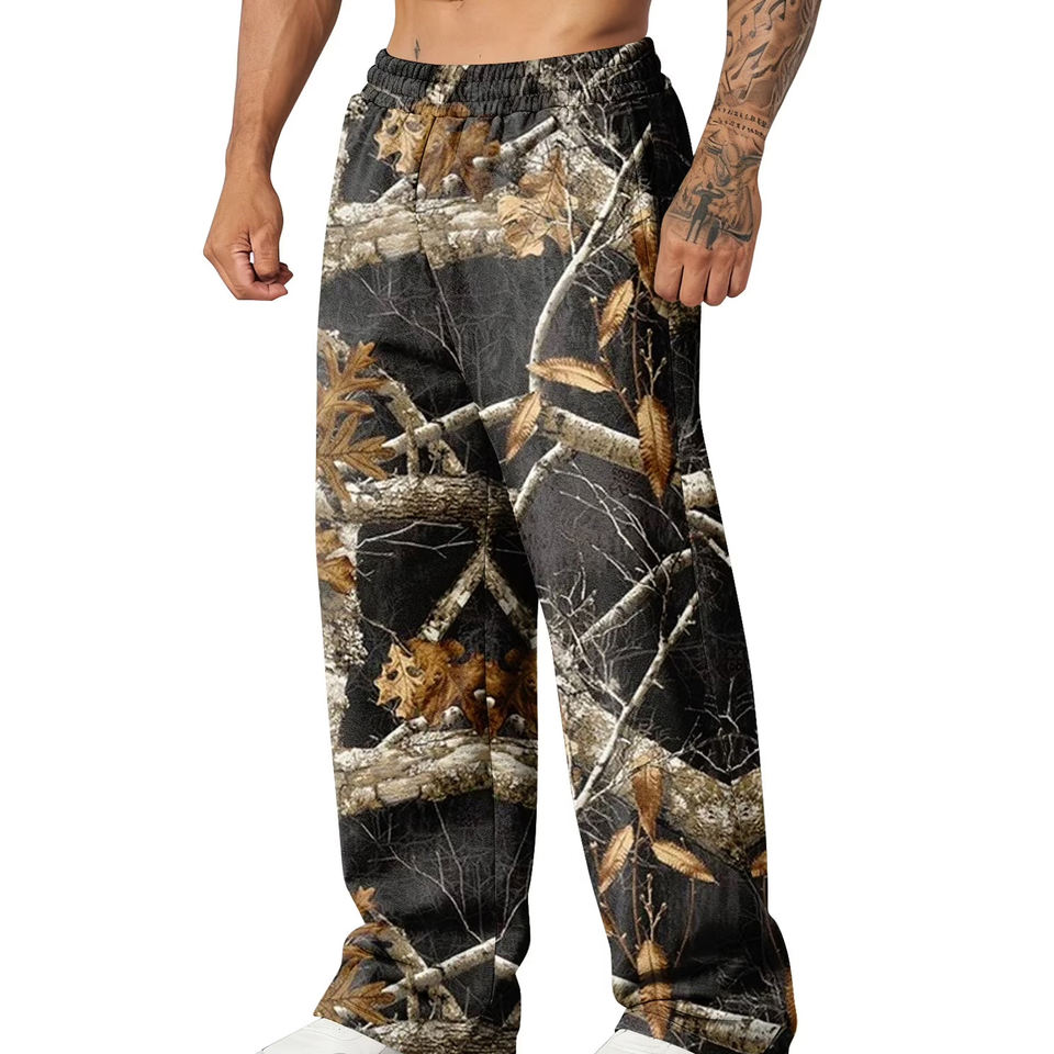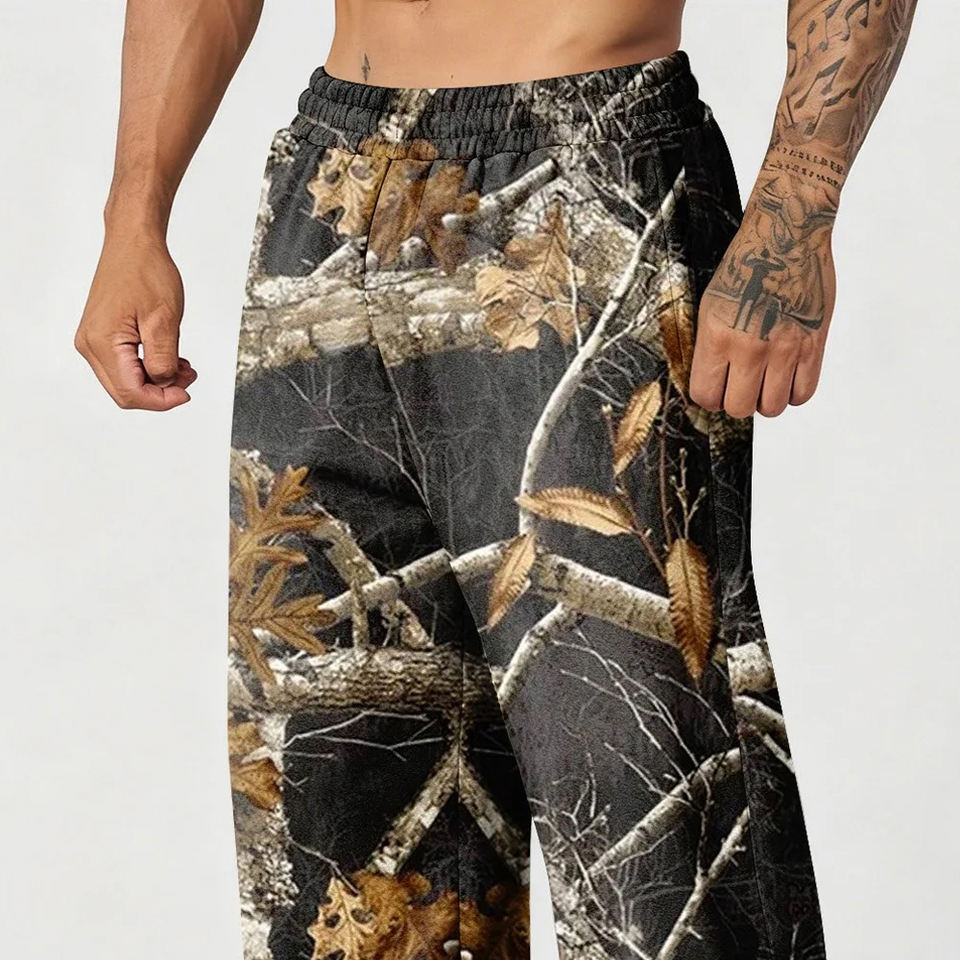 กางเกงวิ่งออกกำลังกายผู้ชายสำหรับฤดูร้อน ลายพิมพ์ดิจิทัลลายป่า ระบายอากาศได้ดี ทรงหลวม สไตล์สตรีทแวร์ เอวยางยืด เหมาะสำหรับใส่วิ่งลำลอง