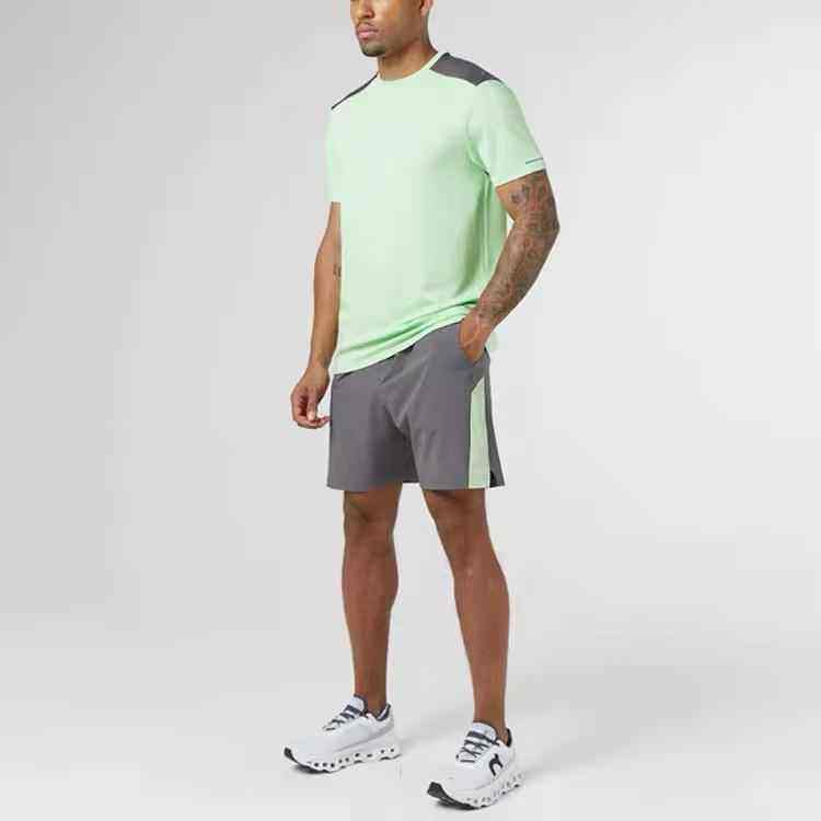 ชุดเสื้อผ้าออกกำลังกายสำหรับผู้ชายใส่ในฤดูร้อนชุดออกกำลังกายน้ำหนักเบาแห้งเร็วพิมพ์ลายเสื้อยืดกางเกงขาสั้นกันลมฟิตปกติปรับแต่งได้