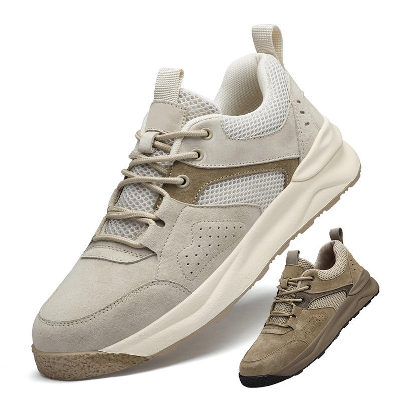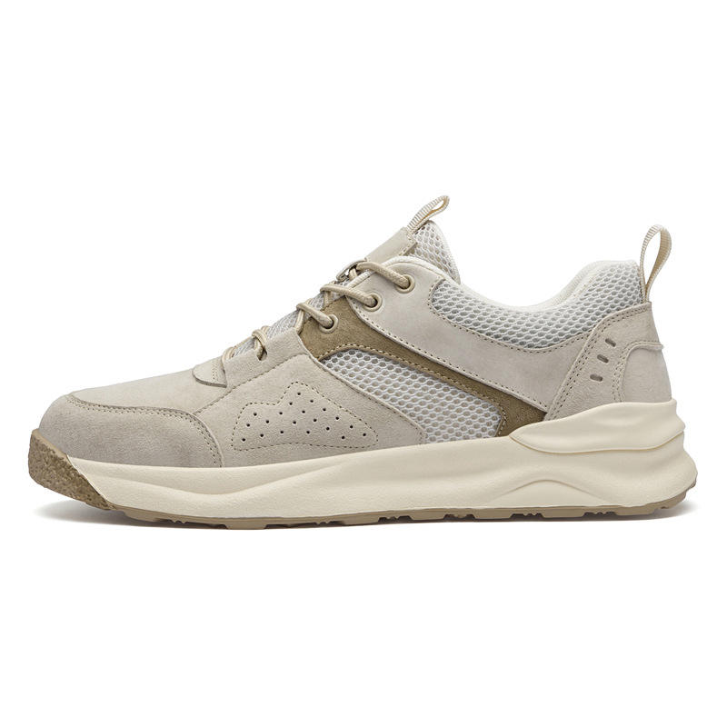 รองเท้าวิ่งผู้ชายสำหรับฤดูร้อน ระบายอากาศได้ดี พื้นบาง รองเท้าผ้าตาข่าย กันลื่น แฟชั่นทันสมัย สีพื้น หนังแท้
