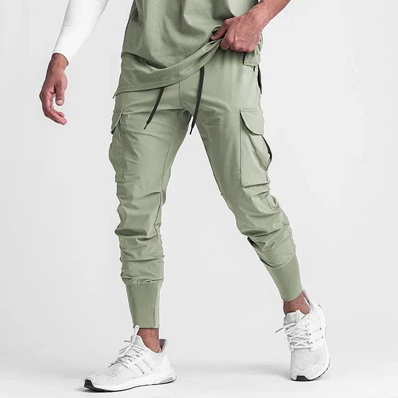 กางเกงคาร์โก้ลำลองสำหรับผู้ชาย ผ้าฝ้ายฟลีซ 100% แห้งเร็ว กันน้ำ เหมาะสำหรับวิ่ง ออกกำลังกาย ฟิตเนส เล่นกีฬา และฝึกซ้อม