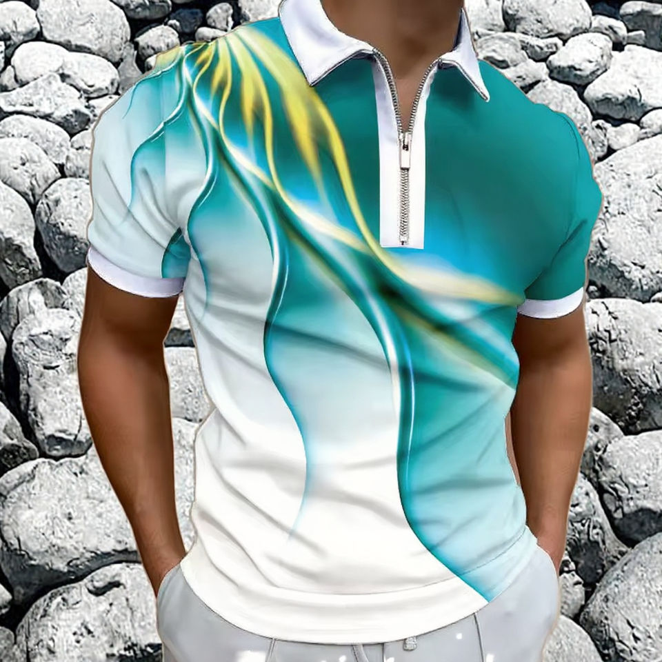 เสื้อเชิ้ตแขนสั้นลำลองสำหรับผู้ชาย ระบายอากาศได้ดี ลายปัก ลายมัดย้อมไล่เฉดสี พิมพ์ลายด้วยความร้อน ดีไซน์ซิป ผ้าถัก