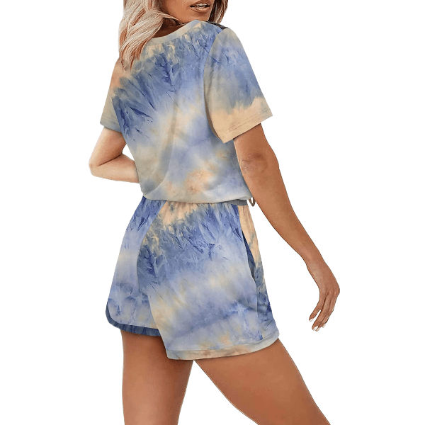 ชุดเสื้อยืดและกางเกงขาสั้นลำลองสำหรับผู้ชาย ผ้าเทอร์รี่น้ำหนักเบา คอวี แขนสั้น ผ้ายืด/ผ้าฝ้าย ระบายอากาศได้ดี พิมพ์ลายซิลค์สกรีน
