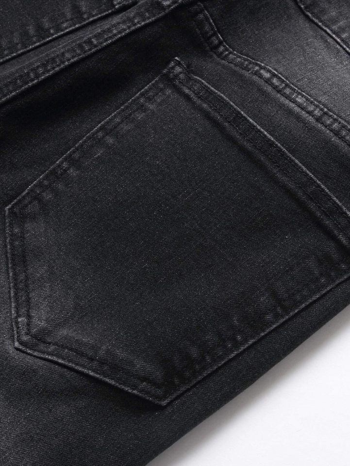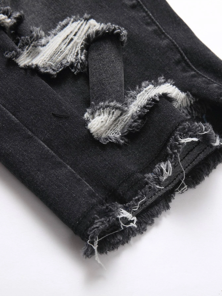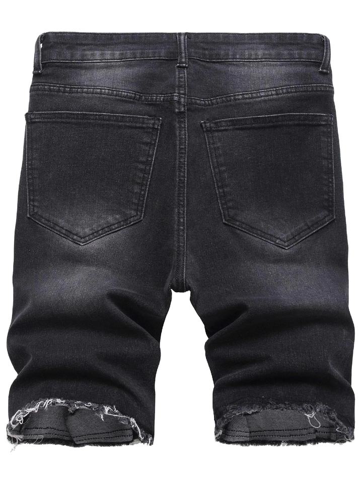 กางเกงยีนส์ขาสั้นของผู้ชายกางเกงขาสั้นผ้าเดนิม100% ระบายอากาศได้ดีกางเกงขาสั้นทรงคาร์โก้มีลายขาด
