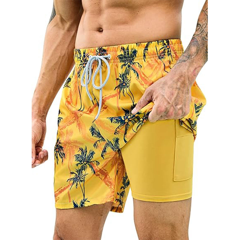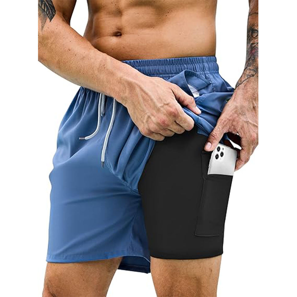 กางเกงชายหาดแฟชั่นระบายอากาศได้ดีสองชั้นสำหรับผู้ชายกางเกงขาสั้นเล่นกีฬาฟิตเนสลำลองออกกำลังกายฟิตเนส