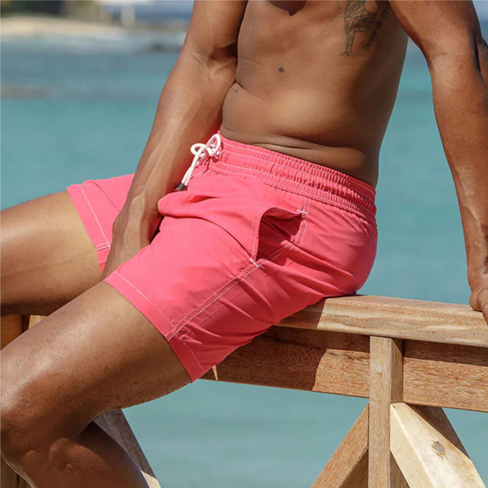 กางเกงว่ายน้ำขาสั้นผ้าตาข่ายสำหรับผู้ชายกางเกงขาสั้นสำหรับใส่วิ่งเล่นยิมมีกระเป๋าแบบซับลิเมชันพิมพ์โลโก้ได้ตามต้องการสำหรับฤดูร้อน