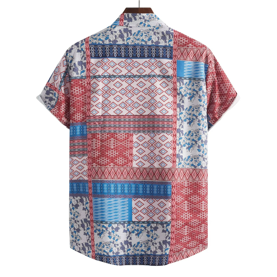 เสื้อเชิ้ตผู้ชายลายพิมพ์ลายดอกไม้สไตล์ฮาวายสำหรับฤดูร้อน แขนสั้น ติดกระดุม ไซส์ใหญ่ แฟชั่นลำลอง