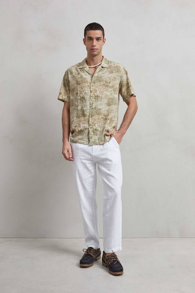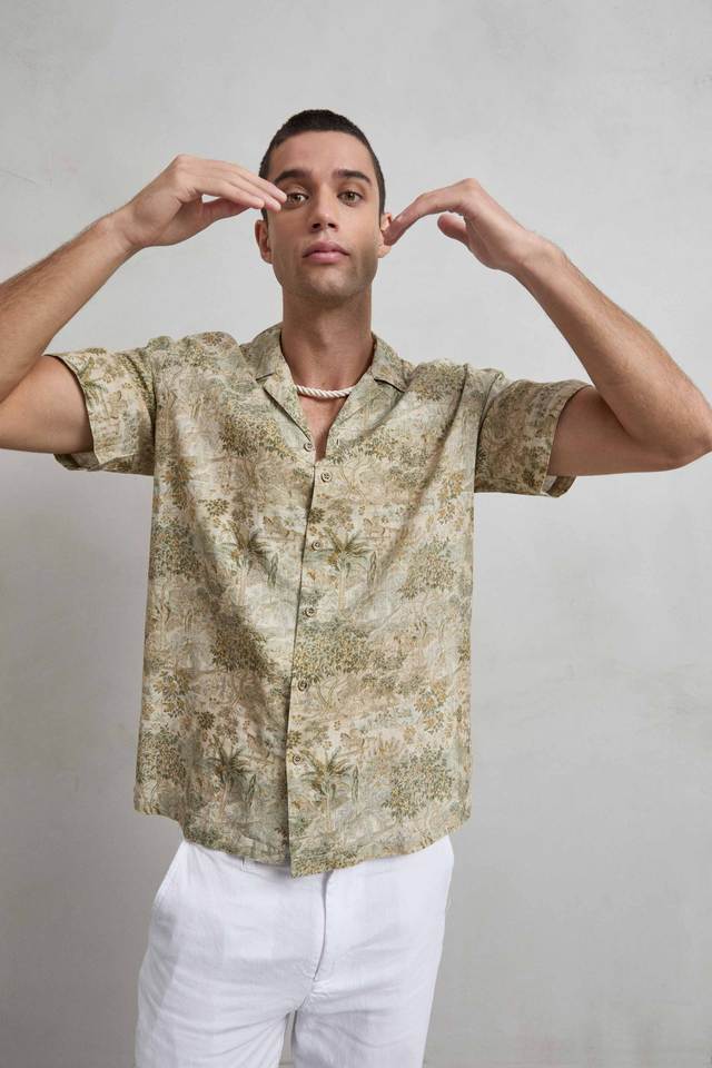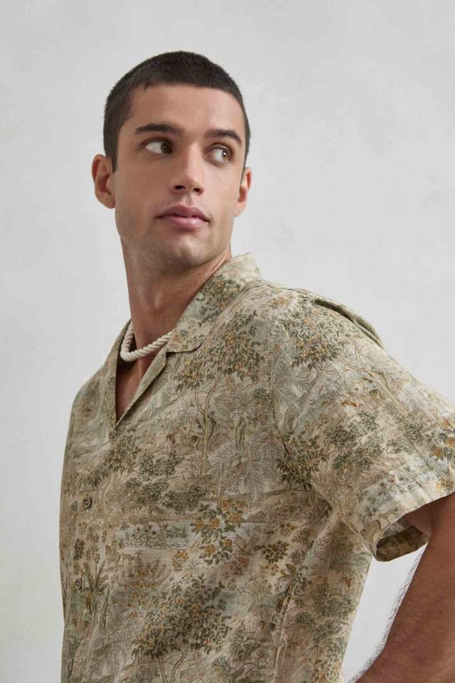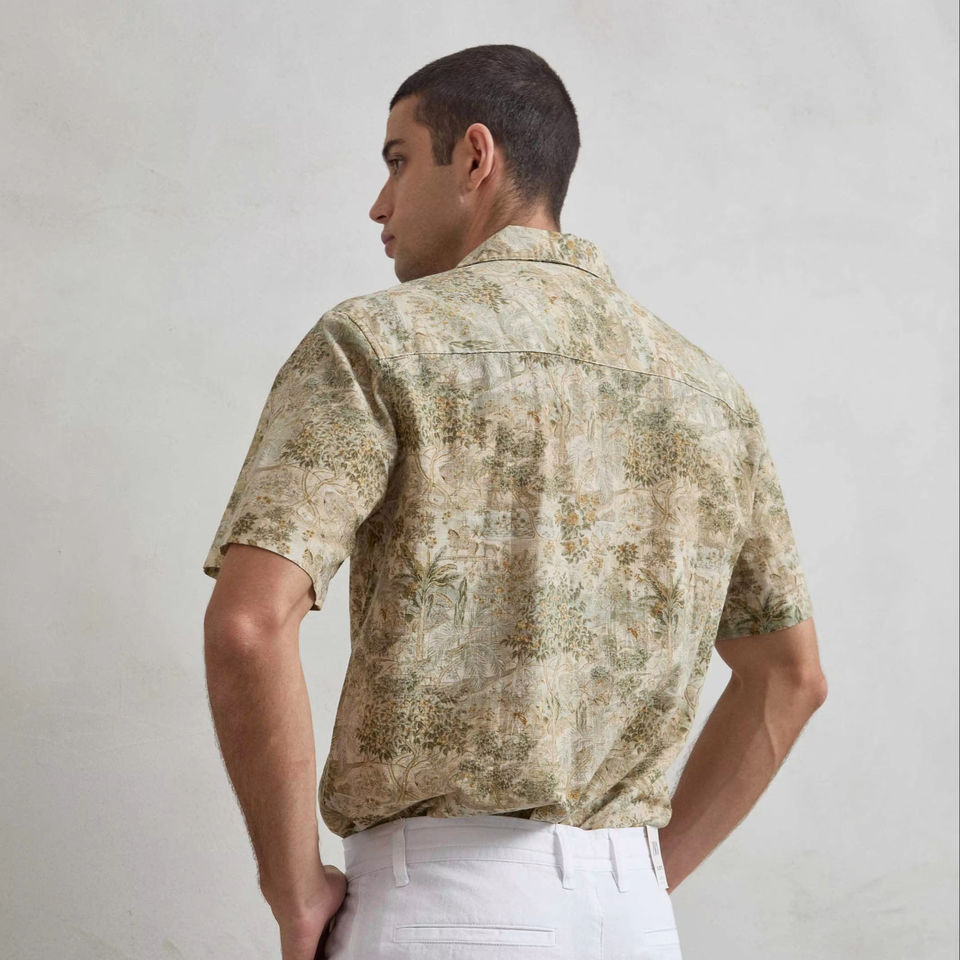 Men's Summer Hawaiian Vacation Style Tropical Plant Print Short Sleeve Shirt