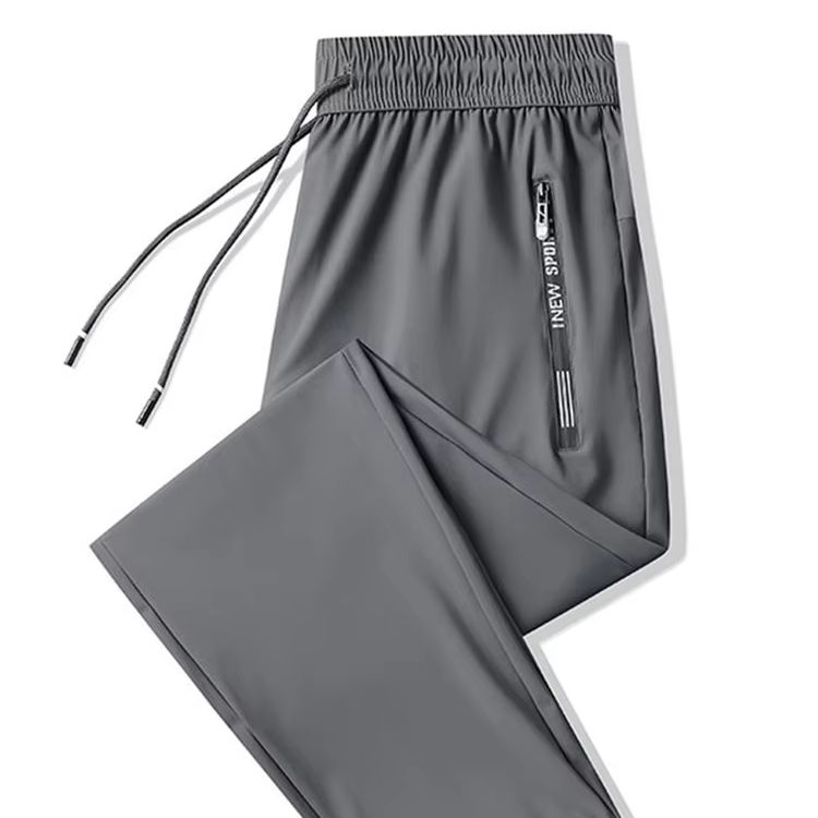 กางเกงผ้าไอซ์ซิลค์สำหรับผู้ชายกางเกงกีฬาผ้าบางแห้งเร็วมีเชือกหูรูดรุ่นลำลองใส่ทำงาน
