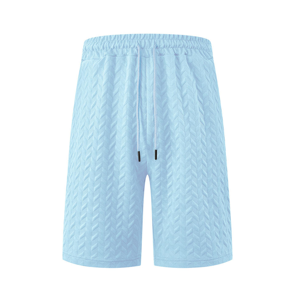 กางเกงขาสั้นสีทึบทรงหลวมสำหรับฤดูร้อนของผู้ชายสีฟ้าอ่อนโพลีเอสเตอร์เชือกผูกกีฬากางเกงชายหาดลำลอง