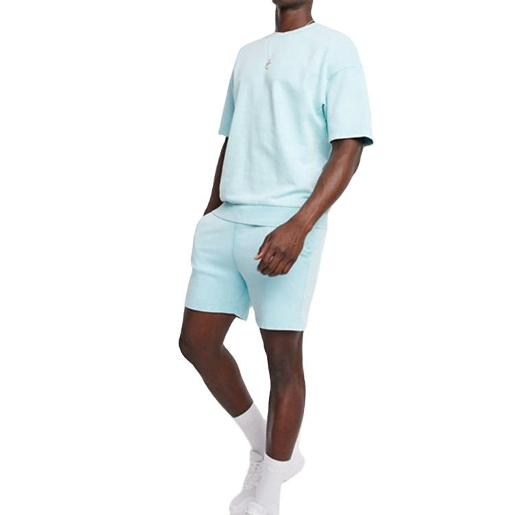 ชุดเสื้อยืดแขนสั้นและกางเกงขาสั้นสำหรับผู้ชายชุด2ชิ้นเสื้อถักระบายอากาศได้ดีชุดฤดูร้อนสำหรับผู้ชาย