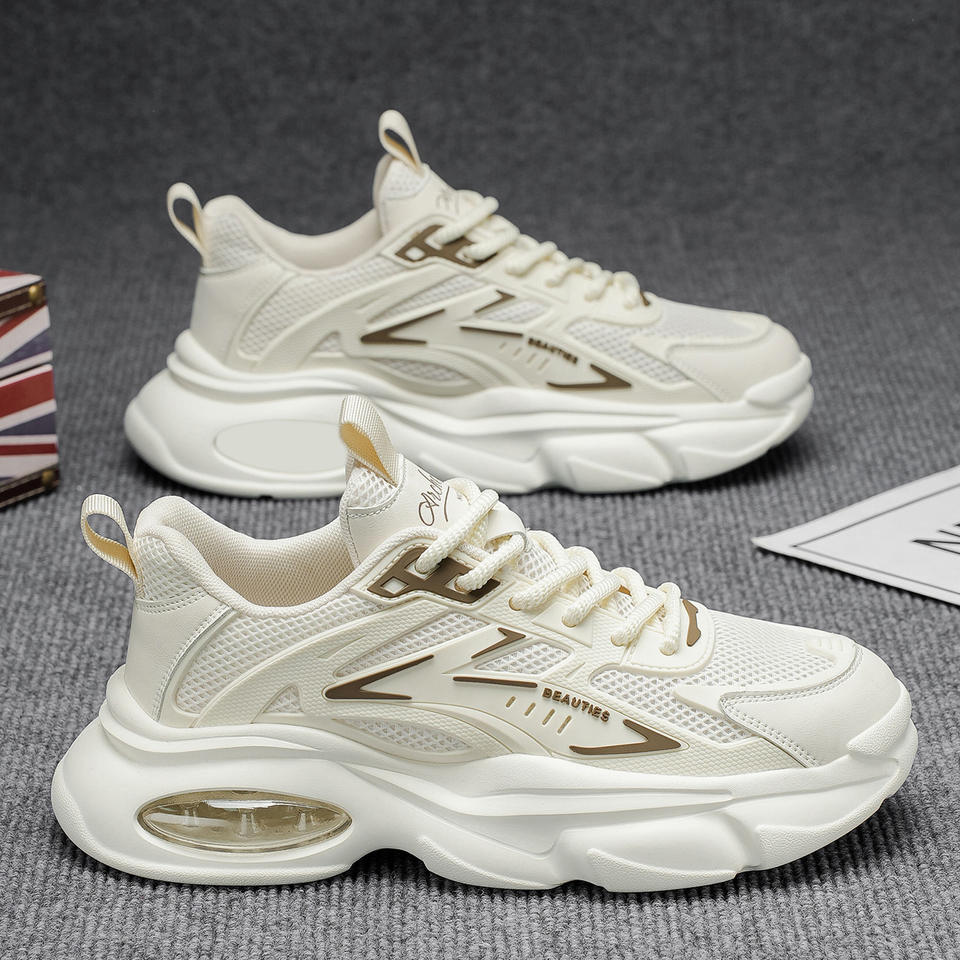 รองเท้าผ้าใบผู้ชายสำหรับฤดูร้อน ระบายอากาศได้ดี พื้นหนา ทันสมัย สวมใส่สบาย เหมาะสำหรับวิ่ง มีเชือกผูก พื้นรองเท้าด้านนอกทำจากยาง EVA สีพื้น