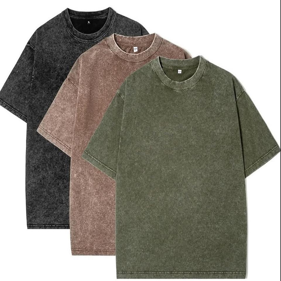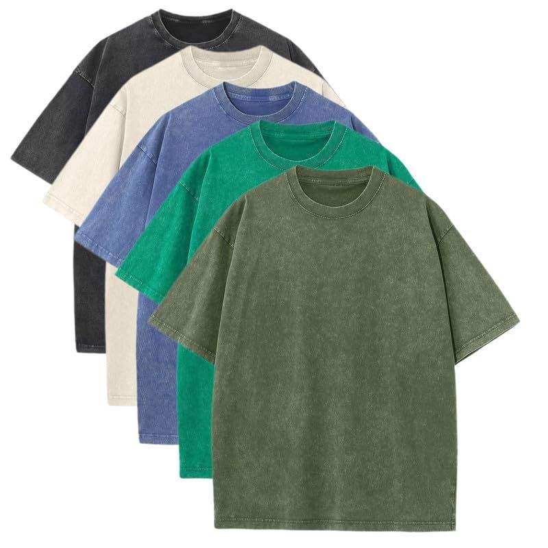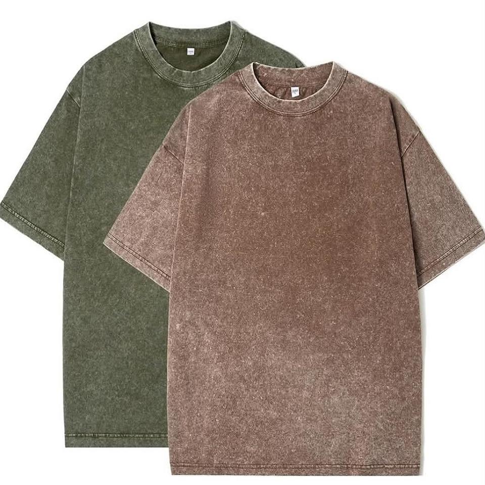 เสื้อยืดแขนสั้นสำหรับผู้ชายใส่ฤดูร้อน220g ผ้าฝ้ายวินเทจคอฟอกสีลายสก๊อตย้อนยุคขนาดพลัสไซส์ระบายอากาศได้ดี
