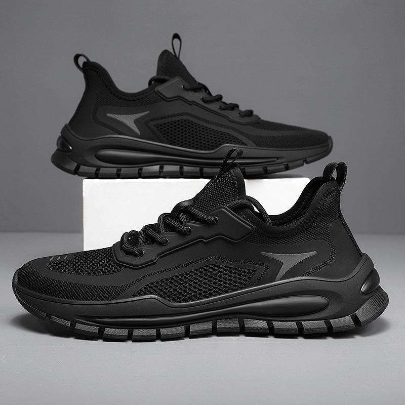 รองเท้ากีฬาผู้ชายสีพื้นสำหรับฤดูร้อน ผ้าตาข่ายบาง ระบายอากาศได้ดี กันลื่น สีดำ