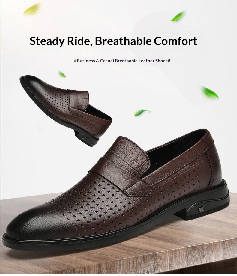 รองเท้าหนังแท้แบบสวมสำหรับผู้ชาย ดีไซน์โปร่ง ระบายอากาศได้ดี สวมใส่สบาย เหมาะสำหรับธุรกิจ พักผ่อน สำนักงาน และอาชีพต่างๆ