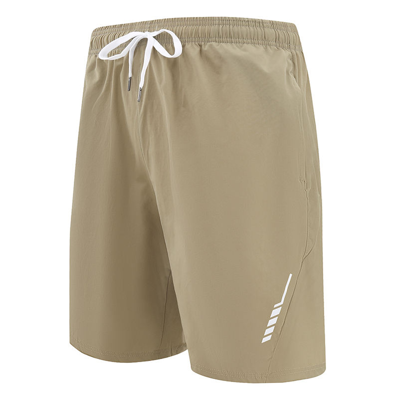 กางเกงขาสั้นกีฬาฤดูร้อนของผู้ชายกางเกงชายหาดทรงหลวมเอวยางยืดระบายอากาศได้ดีผ้าไหมเย็นใส่สบายสีพื้น