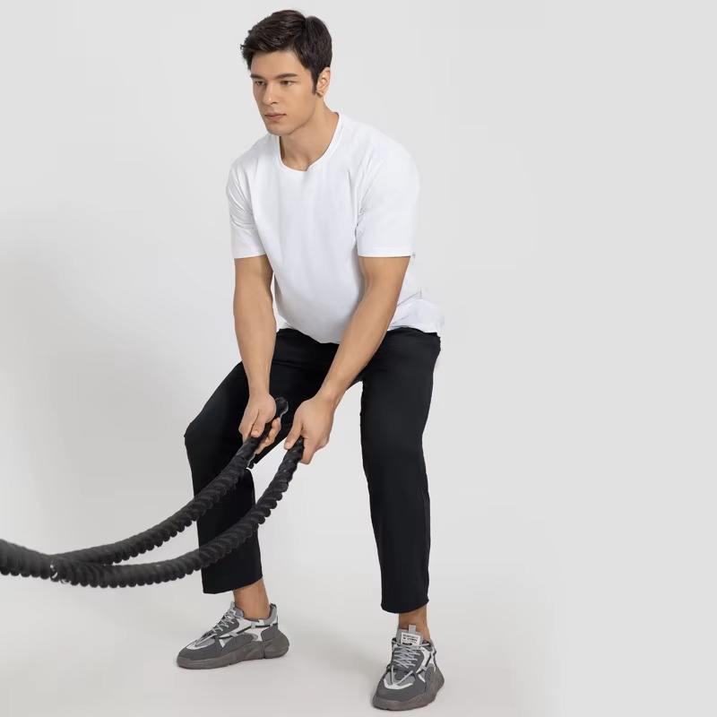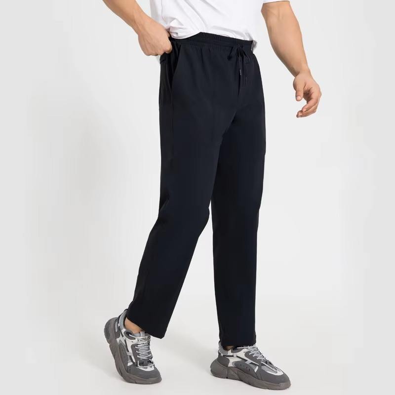 กางเกงกีฬาฤดูร้อนสำหรับผู้ชายแห้งเร็วดีไซน์ขาตรงยาวฟิตเนสกลางแจ้งและกางเกงลำลอง