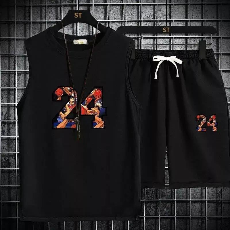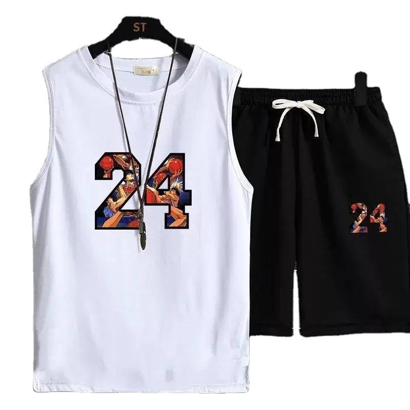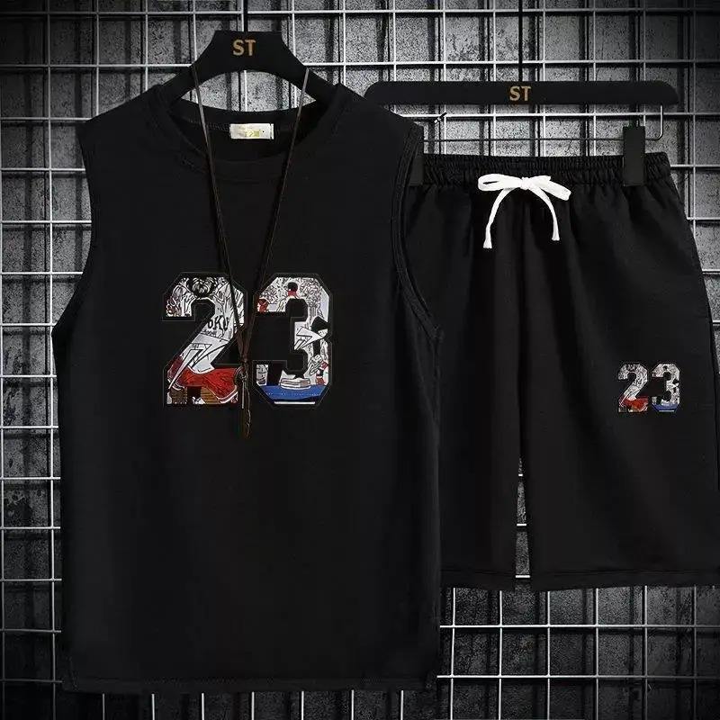 ชุดกีฬาฤดูร้อนของผู้ชายชุดวิ่ง2ชิ้นผ้าคอตตอน100% ระบายอากาศได้ดีขนาดพลัสไซส์ผ้าคอตตอน