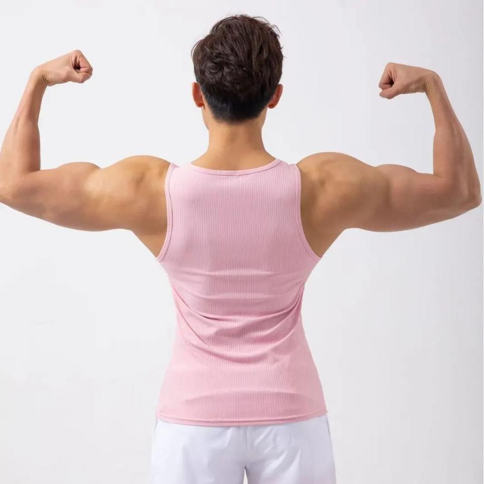 เสื้อกีฬาผู้ชายแห้งเร็วเสื้อออกกำลังกายแบบถักแขนกุดระบายอากาศได้ดีสำหรับวิ่งกลางแจ้งแบบเป็นทางการในฤดูร้อน