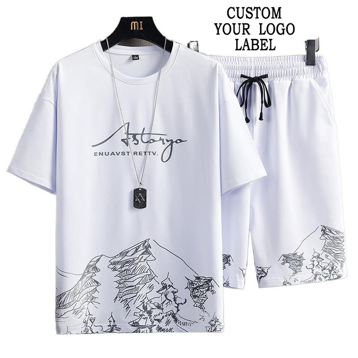 ชุดกีฬาฤดูร้อนของผู้ชายชุดเสื้อผ้าบางแห้งเร็วและระบายอากาศได้ดีพร้อมกางเกงขาสั้นกีฬาซักด้วยความร้อน
