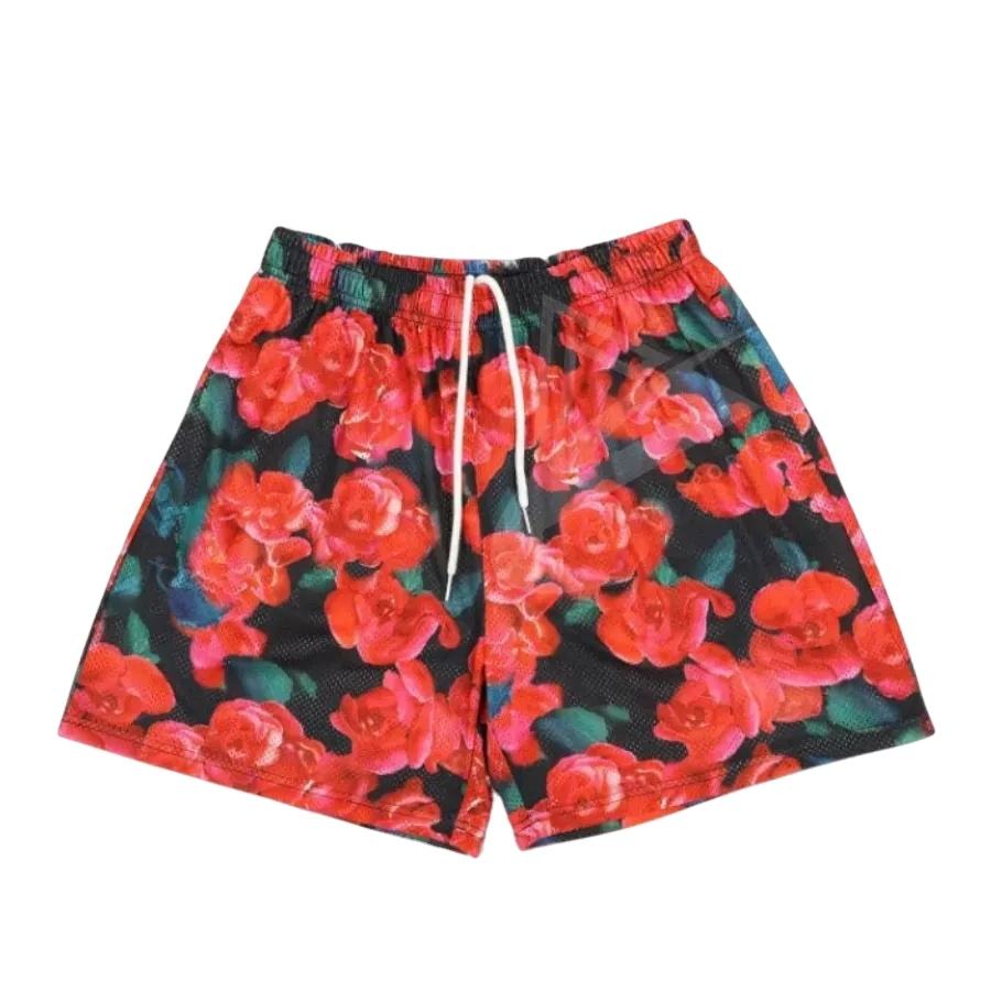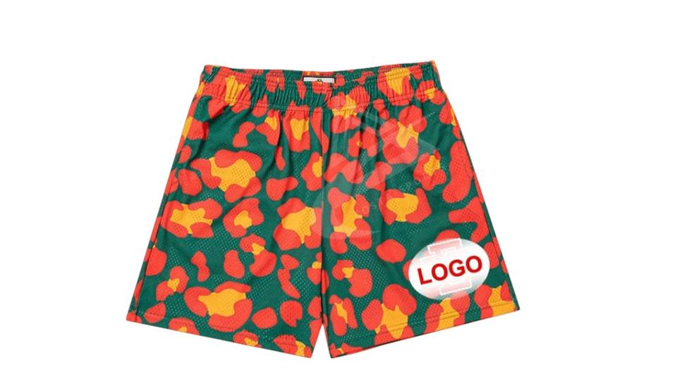 กางเกงขาสั้นผ้าตาข่ายเนื้อแข็งสำหรับผู้ชายกางเกงขาสั้นผ้าแคนวาสป้องกันรอยยับเป็นมิตรกับสิ่งแวดล้อมพิมพ์ลายดอกไม้แบบซับลิเมชันวิ่งเร็ว