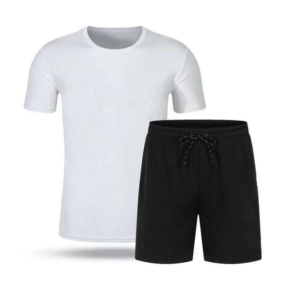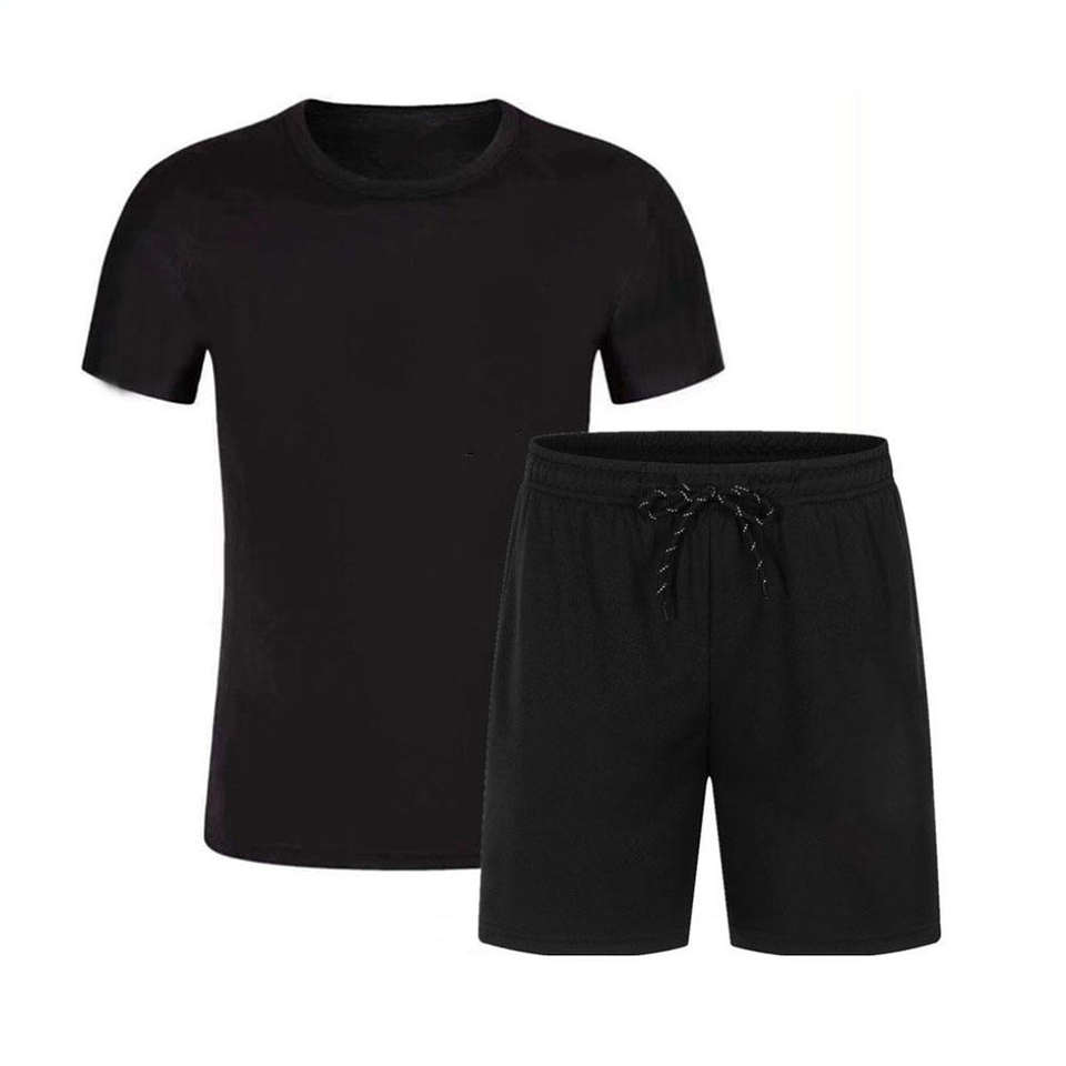 ชุดกีฬาผู้ชายแขนสั้นผ้าฝ้ายถักทอ 100% สำหรับฤดูร้อน ชุดลำลอง 2 ชิ้น