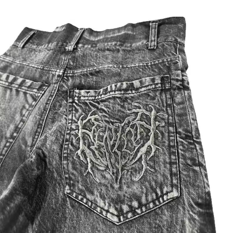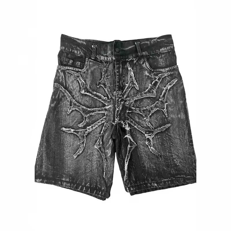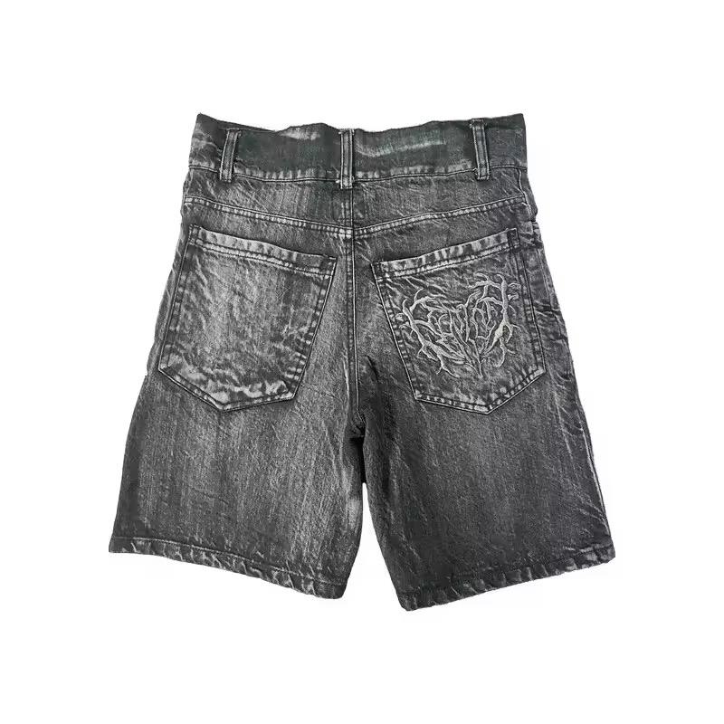 กางเกงยีนส์ขาสั้นเบอร์มิวด้าผู้ชาย แบรนด์เทรนดี้สำหรับฤดูร้อน เอวกลาง ทรงหลวม ขากว้าง ติดกระดุม ระบายอากาศได้ดี กันยับ