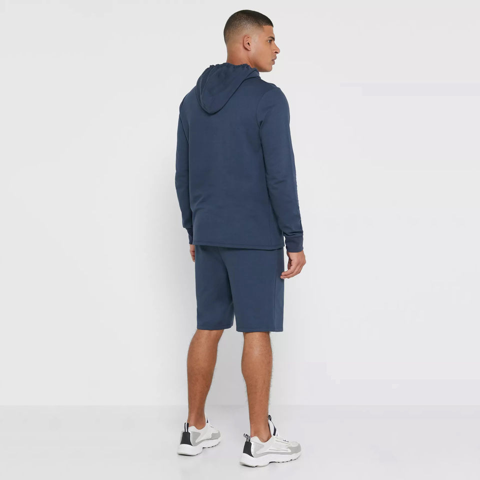 ชุดวอร์มผ้าฝ้ายสองชิ้นสำหรับผู้ชายฤดูร้อนชุดวอร์มแบบบล็อกสีกรมท่าและกางเกงขาสั้นเข้าชุดกัน