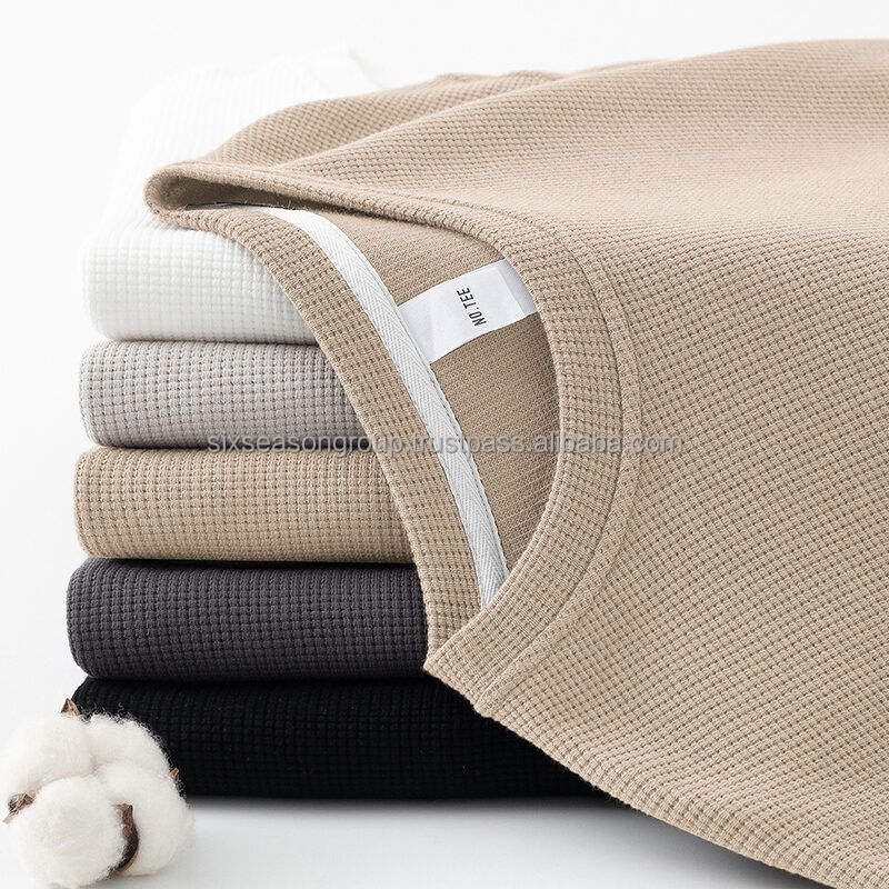 เสื้อยืดวินเทจผู้ชายสำหรับฤดูร้อน ผ้าวาฟเฟิล คอโอเวอร์ คอหลัง แขนสั้น ทรงปกติ ขนาดสั่งทำได้ ผลิตจากผ้าฝ้ายออร์แกนิคเป็นมิตรกับสิ่งแวดล้อม